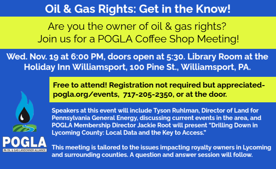 POGLA offers the only event in Pennsylvania jam-packed with sessions designed specifically for you, the oil and gas rights owner. Topics include, but are not limited to, legal, legislative, technology, carbon sequestration, marketing, mineral management, estate, financial, and tax planning. Networking with attendees and speakers over dinner, accompanied by Penn State Creamery ice cream and drinks, will yield valuable insights from their experiences. |